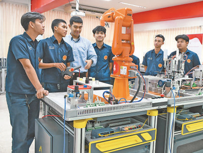 泰国鲁班工坊学生参加自动化生产线实训。(本报记者 孙广勇/摄)
