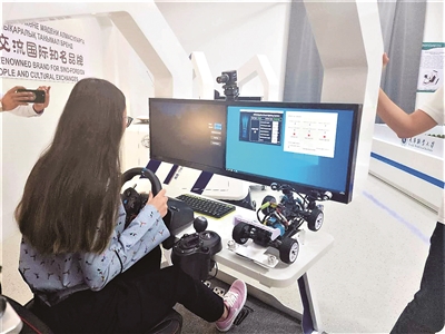 在哈萨克斯坦鲁班工坊,学员正借助辅助驾驶系统学习车辆驾驶。(扎娜尔/摄)